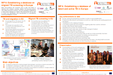 This work package is establishing a multi-country database on migrant TB screening that will be used to inform the identification and harmonisation of cost-effective screening strategies in the EU.