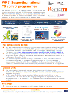 The aim of this work package is to support the development of action plans in EU/EEA member states by surveying tuberculosis control plans and strategies, and reviewing evidence for actions to control and prevent TB.